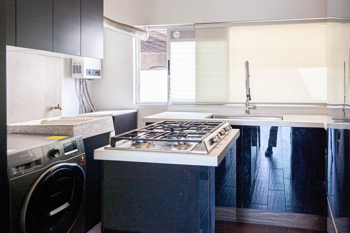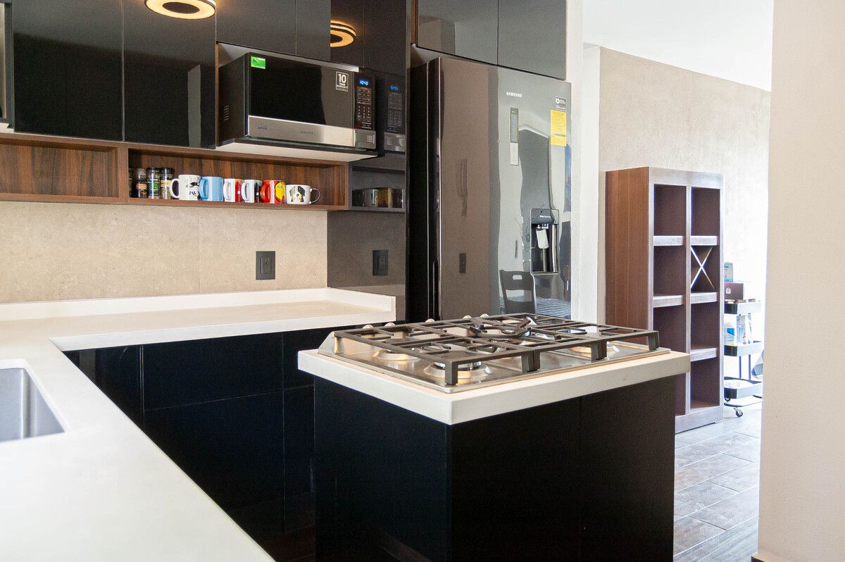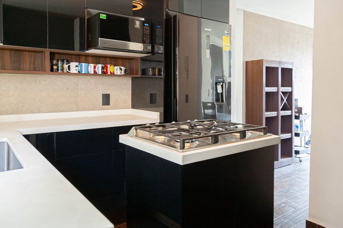 - Cocina integral de diseño con isla al centro